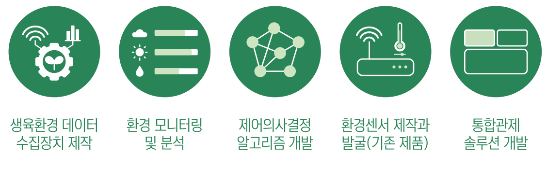 이를 위해 온실 생육환경 데이터 수집장치 제작과 환경 모니터링 및 분석, 제어 의사결정 알고리즘을 개발하고 있습니다.